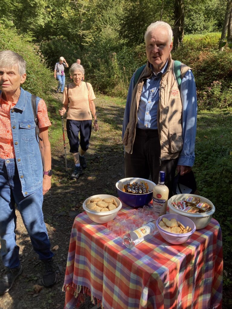 Die Wanderung führte uns über den Dahler Höhenweg! Kleiner Zwischenstopp am Rumscheider Weg; es erwarteten uns kleine Leckereien. Es ging dann noch ein knappes Stündchen weiter bis wir in der Dahler Stube bei Christa und Reinhold Pfeiffer eintrafen und uns an einem leckeren Grill- und Salatbuffet sattessen konnten.